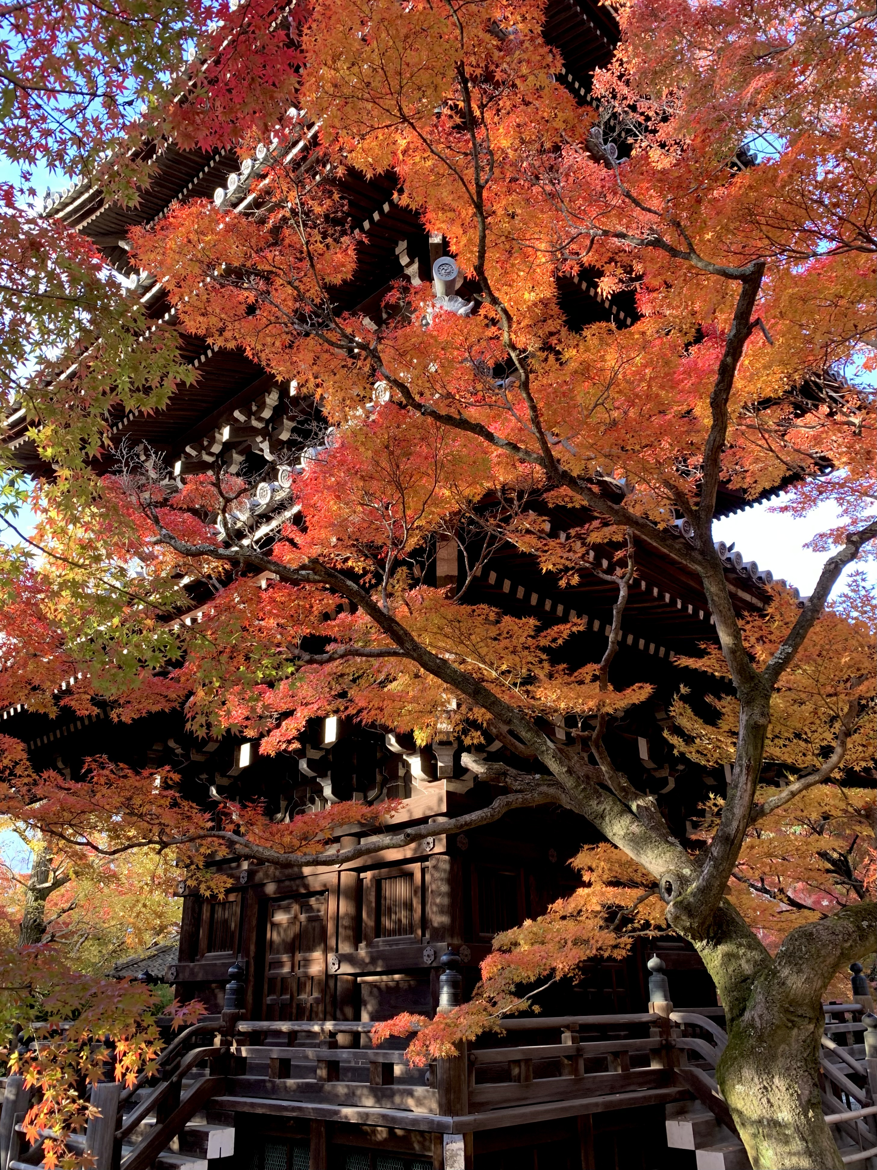ご近所の紅葉の名所も、色とりどりのコントラストが美しいです。